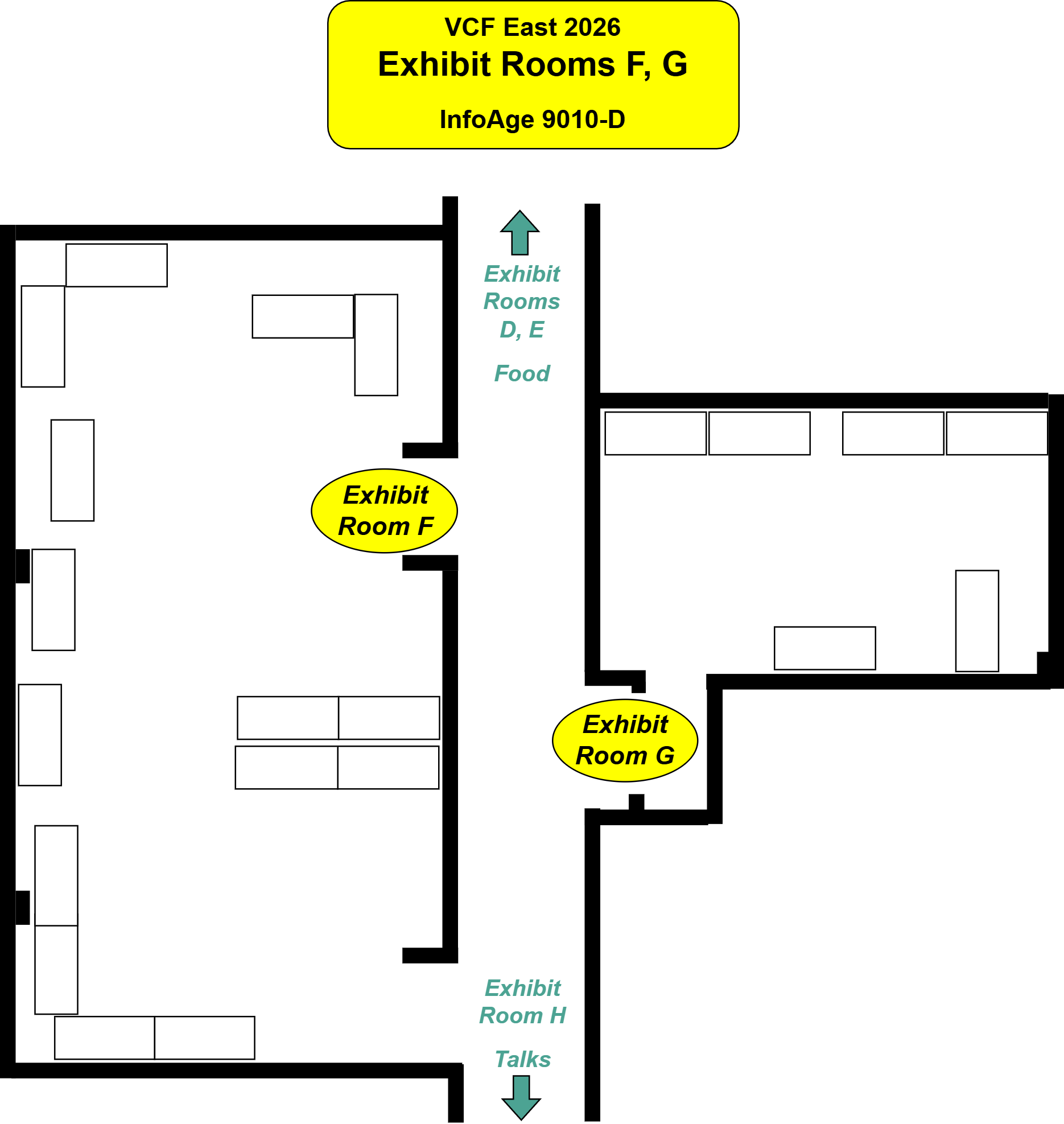 Room A & Lobby — Room B — Room C — Room D — Room E — Rooms F & G — Room H